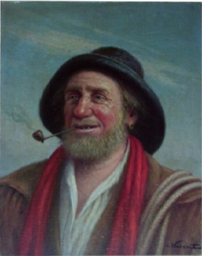 043 | Charakterbildnis eines Pfeife rauchenden Fischers (Öl/Holz ohne Rahmen) Ähnliche Motive: rauchende Männer | 82×62 (hoch) | wurde 05/2007 und 12/2008 bei www.kunst-und-kuriosa.de zur Versteigerung angeboten, bzw. 05/2010 bei www.mehlis.eu/archiv/58-auktion/objekte/0004234 versteigert |