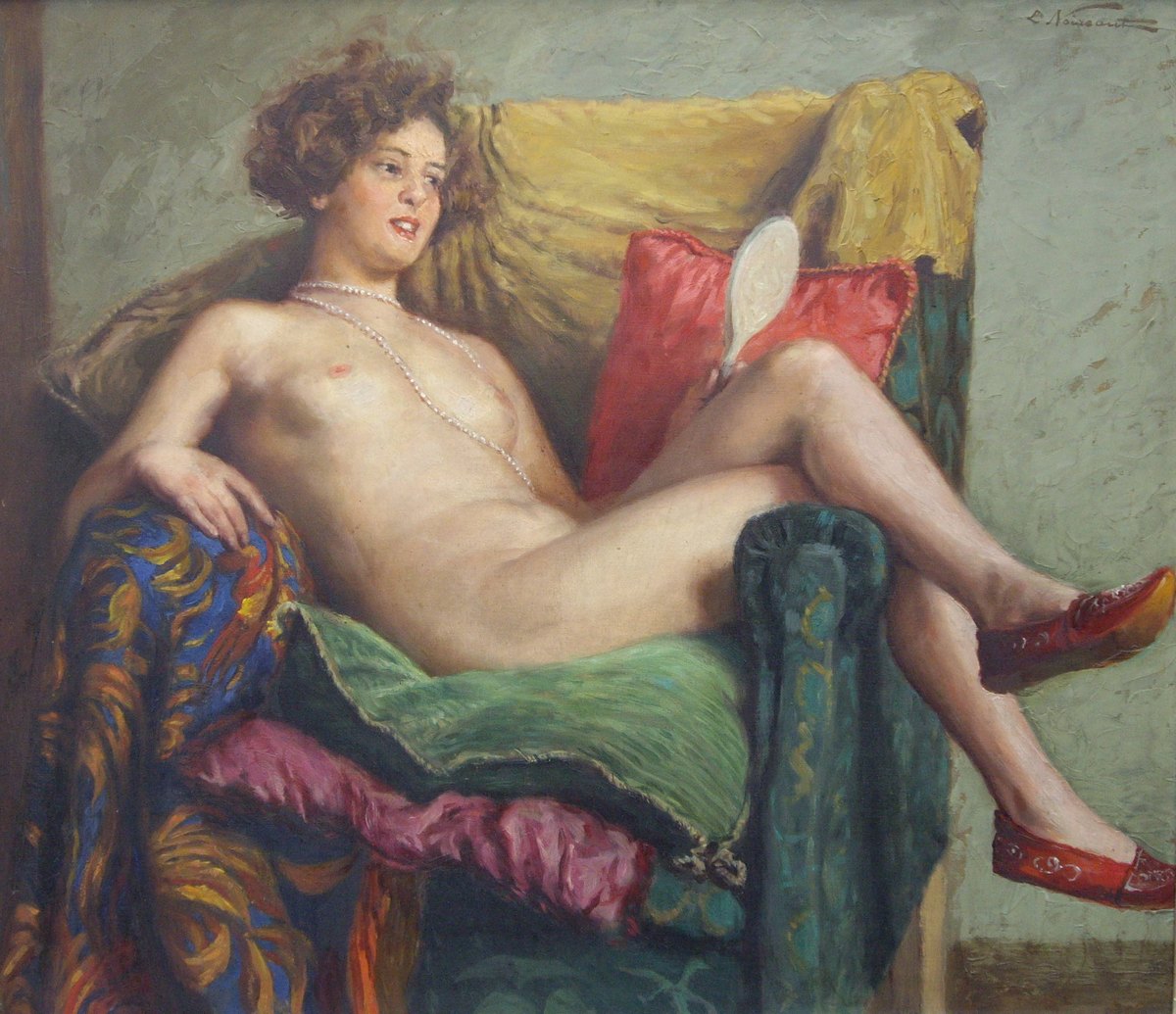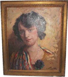 467 | Jeune Femme 1944 - Portraitgemälde (Halbprofil) einer jungen Frau mit Perlenkette. (Öl/Hartfaserplatte) Anmerkung: rechts unten mit Jahreszahl 1944 signiert Ähnliche Motive: 60, 61, 94, 295 und 393 | 46/38 - 55/47 (hoch) | Wurde im Oktober 2021 bei www.ebay.fr angeboten (eBay-Artikelnummer: 304177480462). |