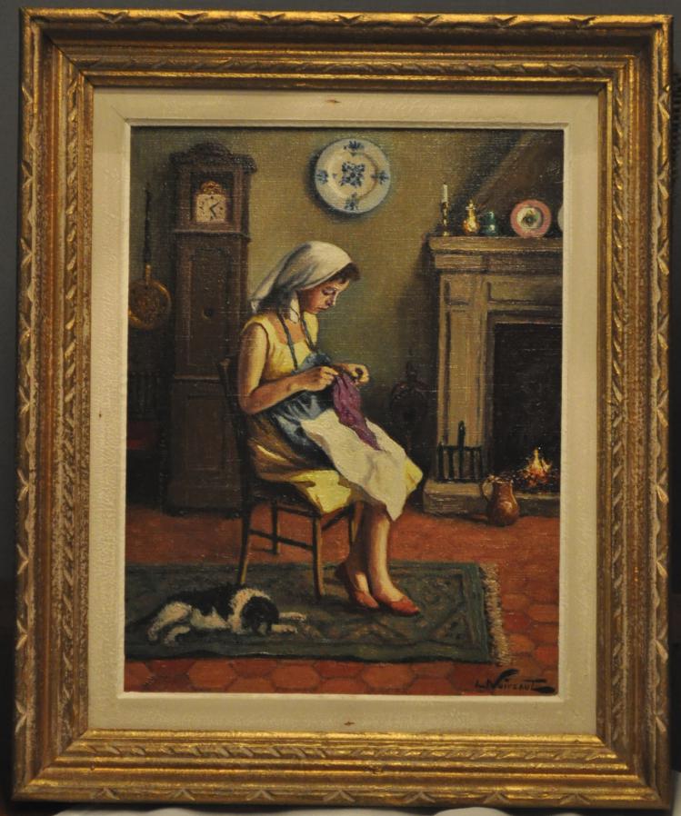 477 | Intérieur breton - Zwei Männer bei einer Brotzeit werden im Wirtshaus von einer Kellnerin bedient. Auf dem Boden im Vordergrund befindet sich ein Korb mit frischem Gemüse. (Öl/Leinwand) Anmerkung: rechts unten signiert Ähnliche Motive: 0330, 0476, 0522 | 46/55 (quer) | Wurde im April 2022 bei www.alexandrelandre.com (Lot: 501) zum Kauf angeboten. |