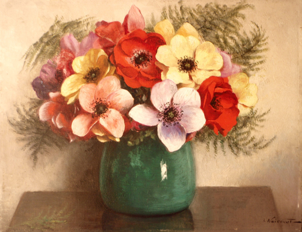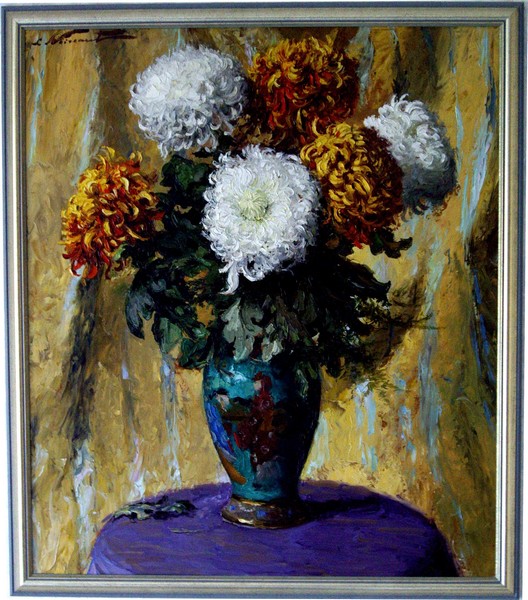 035 | Ohne Titel (Chrysanthemen in Glasvase) | 22×27 (quer) | 2007 im Internet entdeckt (www.artprice.com) |