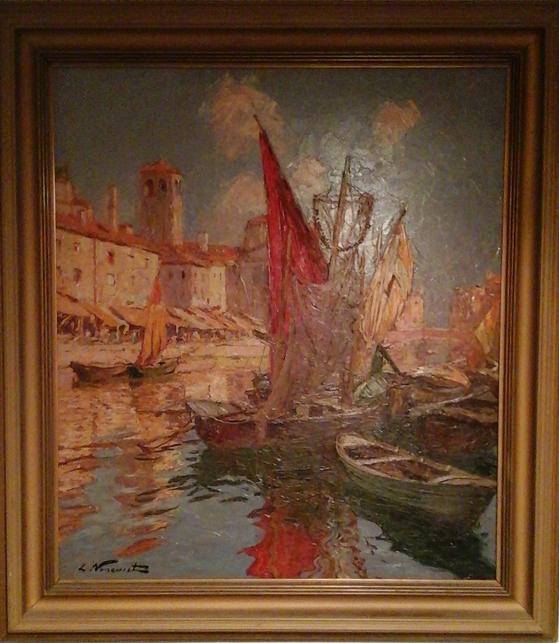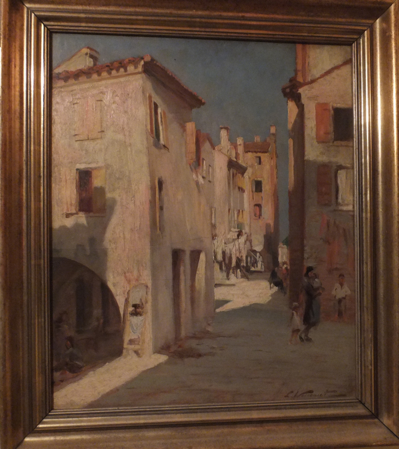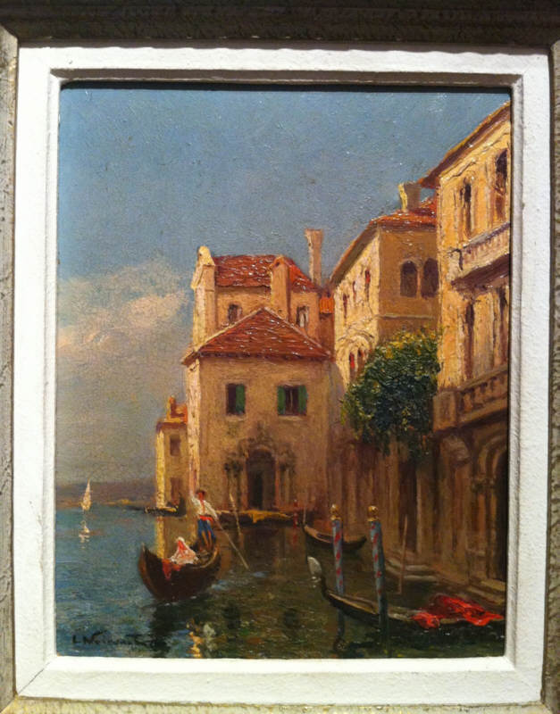 468 | Venise - ein idyllischer Kanal an einem sonnigen Morgen in Venedig. Im Hintergrund ist der Campanile di San Marco zu sehen. (Öl/Holz) Anmerkung: rechts unten signiert Ähnliche Motive: 0056, 0057, 0064, 0142 und 409. | 54/65 (quer) | Wurde im November 2021 bei https://drouot.com ( Lot Nr. 812) zum Kauf angeboten. Wird aktuell bei www.ebay.uk (eBay-Artikelnummer: 373834735947) angeboten. |