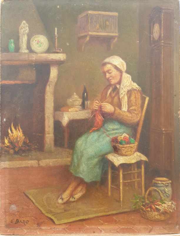461 | Portrait d'un homme en train de boire - freundlich lächelnder Herr mit grauem Vollbart, schwarzer Baskenmütze und roter Weste genießt ein Glas Rotwein. (Öl/Holz) Anmerkung: rechts unten signiert mit "E. BARO" Ähnliche Motive: trinkende Männer | -/- (hoch) | Wurde im Mai 2021 bei www.ebay.fr angeboten (Numéro de l'objet eBay: 333656862519). |
