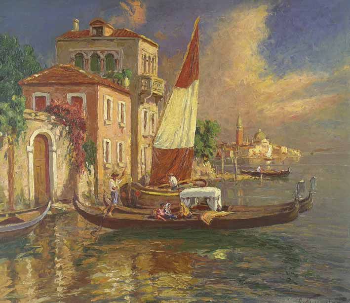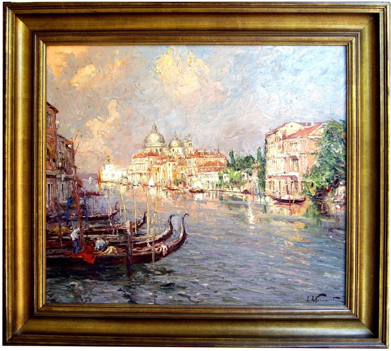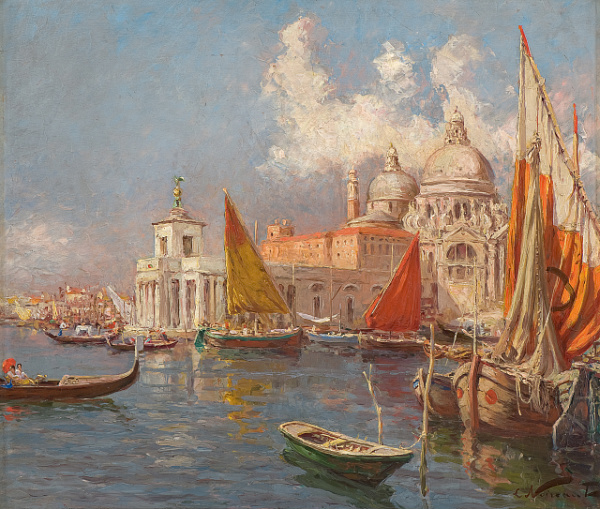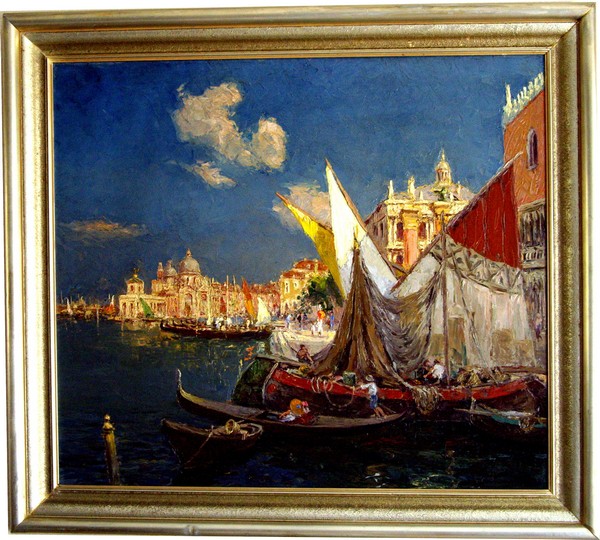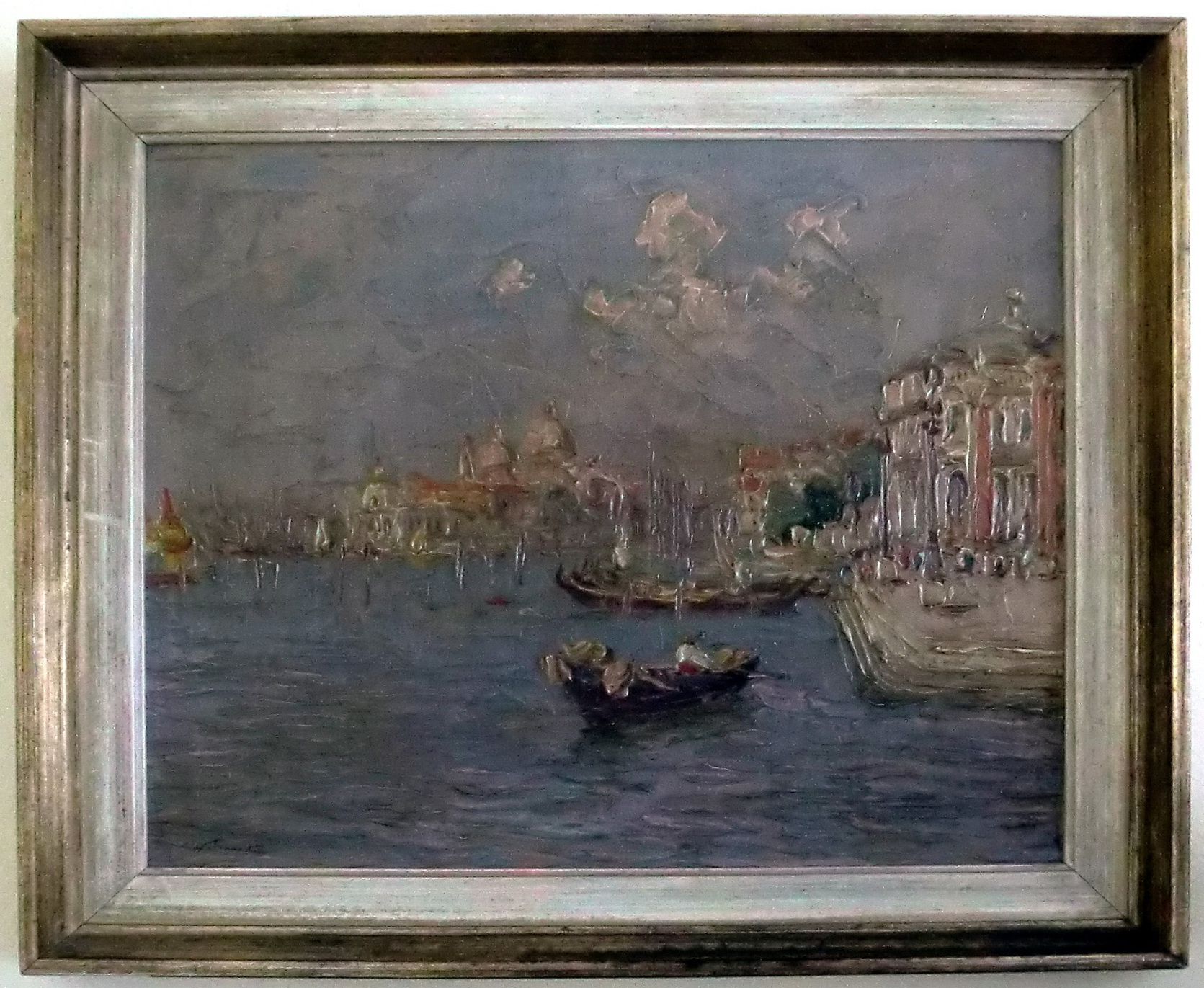 506 | Venise, promenade sur le grand canal - ein venezianischer Gondoliere auf dem Canal Grande mit Santa Maria della Salute im Hintergrund. (Öl/Holz) Ähnliche Motive: 0057, 0064, 0076, 0077, 0110, 0135, 0142, 0155, 0312, 0338, 0409, 0423, 0468, 0488, 0490 | 26/34 (quer) | Wurde im Juni 2023 bei www.mutualart.com zur Versteigerung angeboten. |