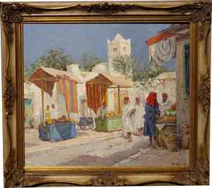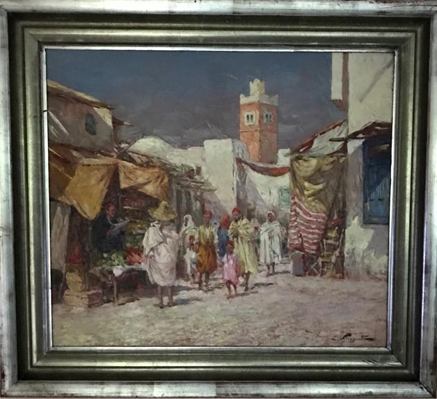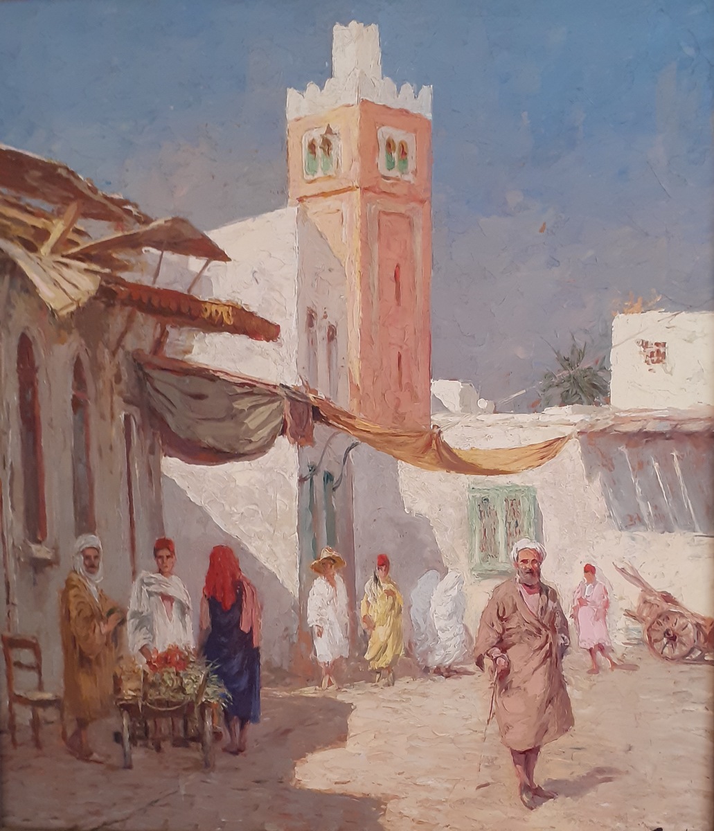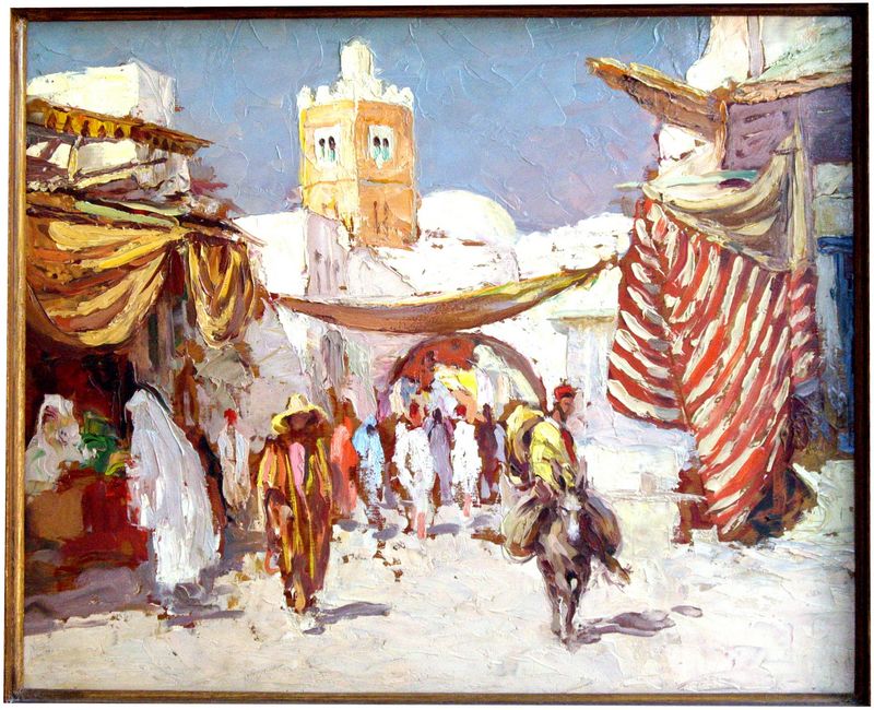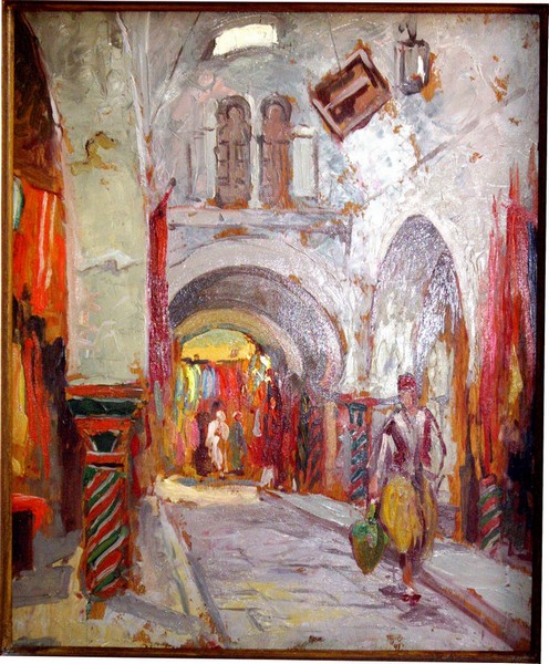 539 | Souk in Tunesien (Öl/Holz) Anmerkung: rechts oben signiert Ähnliche Motive: 0051, 0440 | -/- (hoch) | Mannheimer Familie |