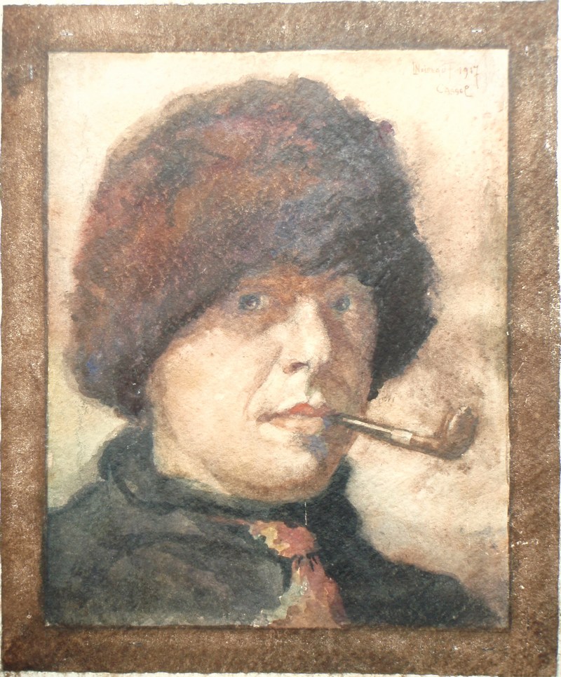 063 | Selbstportrait "Cassel 1917" (Aquarell/Papier) Ähnliche Motive: rauchende Männer | (hoch) | Sammlung Körner |