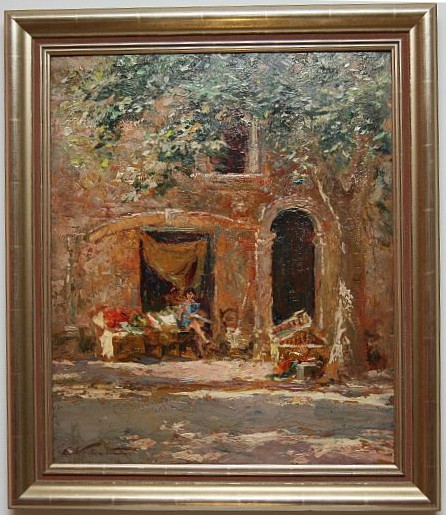 537 | Südländische Stadtszene (Öl/Holz) Anmerkung: links unten signiert Ähnliches Motiv: 0390 | -/- (quer) | Mannheimer Familie |