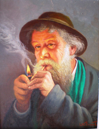 072 | Alter Seemann mit Hut und Pfeife (Öl/Holz) Ähnliche Motive: rauchende Männer | 26×34 (hoch) | wurde bis 30.11.2008 bei www.ebay.de angeboten Artikelnummer: 220206630431 und 180307927556 |
