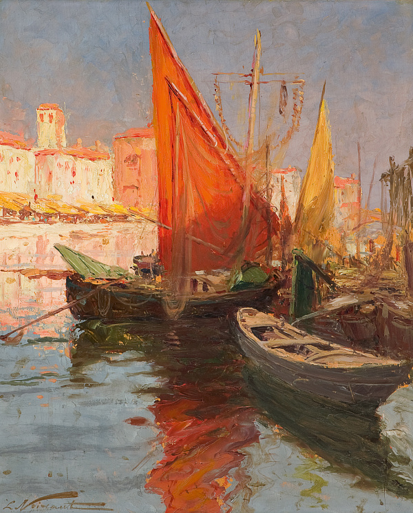 531 | View of the port - Fischerboote im idyllischen Hafen von Martigues. (Öl/Hartfaserplatte) Anmerkung: links unten signiert Ähnliche Motive: Fischerboote | 73/60 (quer) | Wurde im November 2024 bei www.proantic.com entdeckt. |
