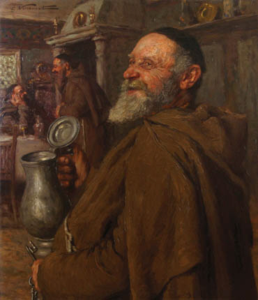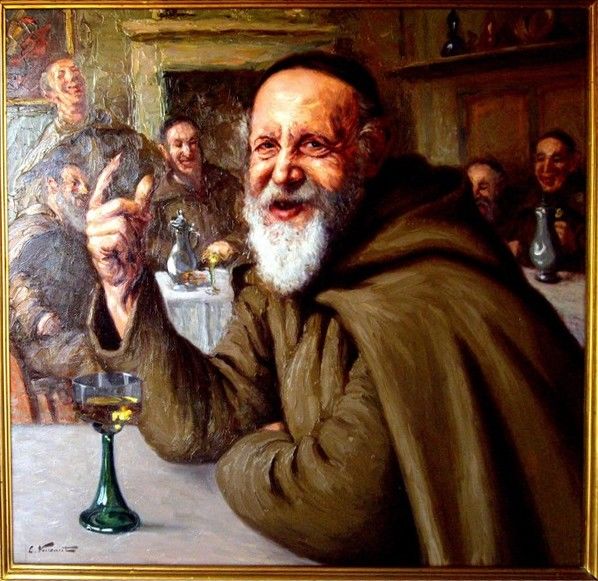536 | Mönch beim Wein (Öl/Holz) Anmerkung: links unten signiert Ähnliche Motive: 0088,0464, 0466, 0419 | -/- (quer) | Mannheimer Familie |