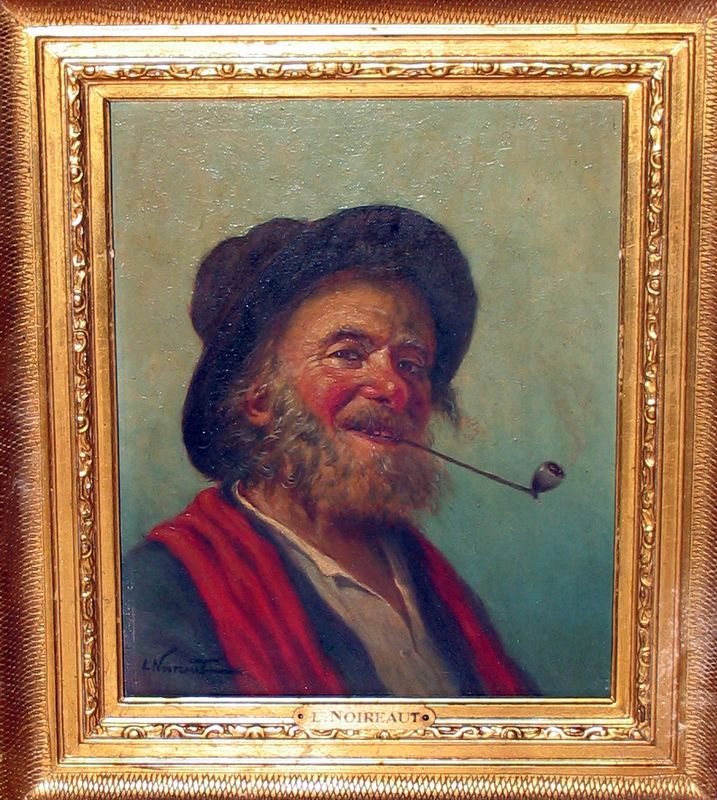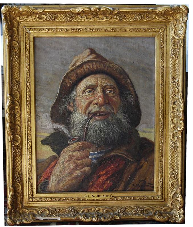 471 | L'Le marin à la pipe - graubärtiger Seemann mit Tabakspfeife, schwarzem Südwester und grauer Jacke trägt ein Seil über der linken Schulter. (Öl/Hartfaserplatte) Anmerkung: links unten signiert Ähnliche Motive: rauchende Männer | 41/33 (hoch) | Wurde im November 2021 bei https://drouot.com ( Lot Nr. 814) zum Kauf angeboten. |