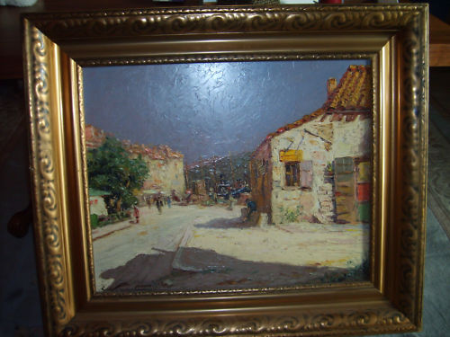 044 | Dorfstraße mit spatentragendem Mann und kleinem Mädchen (Öl/Holz) | 56×66 | wurde am 23.06.2007 bei www.kunst-und-kuriosa.de zur Versteigerung angeboten (Lot. 0555), am 14.10.2007 bei ebay versteigert (ohne Rahmen, restaurierungs- und reinigungsbedürftig), wurde erneut am 04.12.2010 bei www.kunst-und-kuriosa.de zur Versteigerung angeboten (Lot. 1323) und am 02.01.2016 erneut bei ebay angeboten (eBay-Artikelnummer: 381482586401). |
