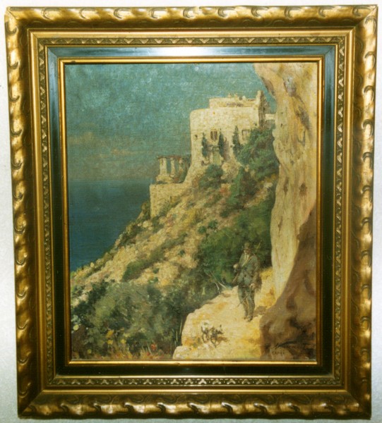 053 | Capri - Salto di Tiberio - Jäger mit Hund (Öl/Holz) Ähnliche Motive: 0052, 0054, 0123 und 0455. | 50×60 (hoch) | Sammlung Bechtold |