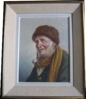 047 | Fischer mit Pfeife (Öl/Holz) Ähnliche Motive: rauchende Männer | 35×27 (hoch) | 09/2007 im Internet entdeckt (ebay) |