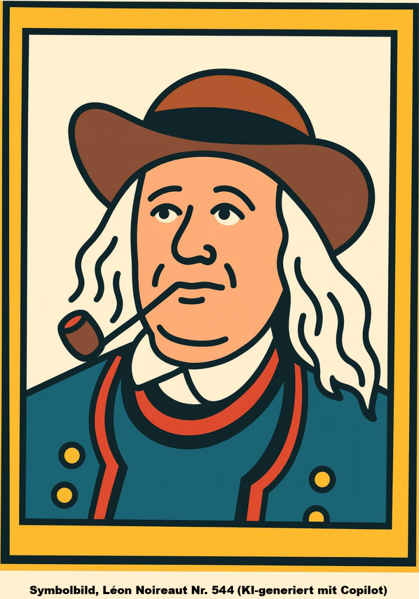 | 544 | Pfeifenraucher - Mann mit langen grauen Haaren, braunem Hut und blauer Trachtenjacke gnießt eine Tabakspfeife. (Öl/Holz) Anmerkung: Signatur "E. BARO" rechts unten Ähnliches Motiv: 0544 | -/- (hoch) | Wurde im Oktober 2021 bei www.facebook.com veröffentlicht. Symbolbild 544 erstellt mit KI (Copilot) |