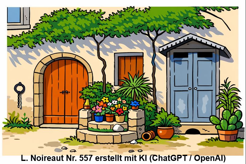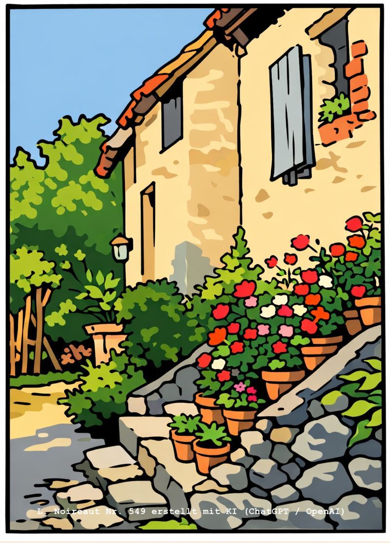 | 557 | Le puit - romantischer Hintereingang im Sommer mit Topfpflanzen und am Haus emporwachsenden Kletterpflanzen (Öl/Leinwand) Ähnliche Motive: 0091, 0131, 0157, 0175 und 0515 | 60/74 (quer) | Wurde im Januar 2026 bei www.interencheres.com angeboten. Illustration 557 erstellt mit KI (ChatGPT / OpenAI) |