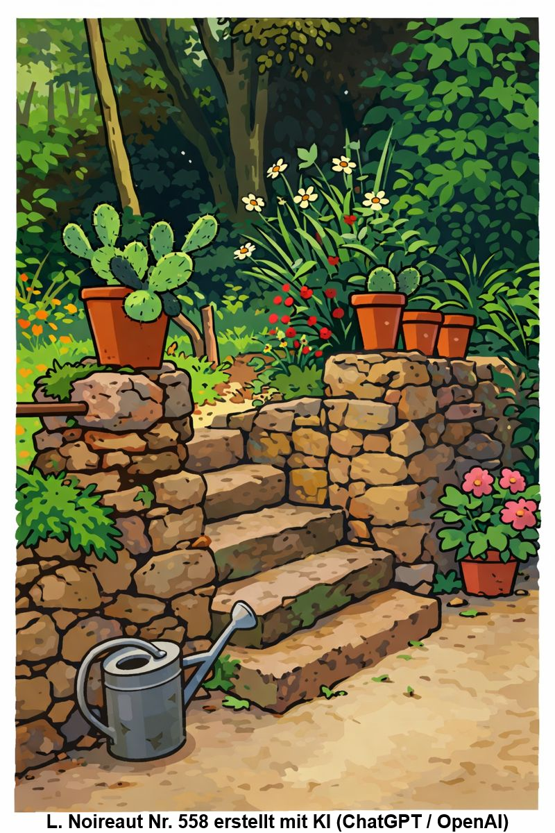 | 558 | Escalier au Jardin - romantische Treppe im sommerlichen Garten mit Topfpflanzen und Blechgießkanne (Öl/Hartfaserplatte) | 39/46 - 27/35 (hoch) | Wurde im Januar 2026 bei www.ebay.com angeboten. Illustration 558 erstellt mit KI (ChatGPT / OpenAI) |